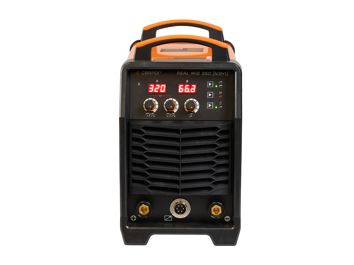 REAL MIG 350 (N3H1) предназначен для полуавтоматической сварки в среде защитных газов (MIG/MAG), сварки порошковой проволокой (FCAW), ручной дуговой сварки покрытым электродом (ММА), а также аргонодуговой сварки неплавящимся электродом (TIG DC).